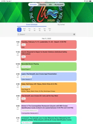 Conveniently browse the entire schedule for The Smooth Jazz Cruise 25.1. Get the key information of your event without ever having to crack open an event guide.