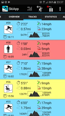 SkiApp automatically detects and separates your skiing day into meaningful track types: