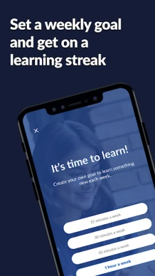 - SET A GOAL: Set a weekly learning goal and get reminded along the way to earn a streak.