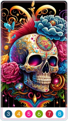 Skull Coloring Book - Color by Number, Paint by Number Free Paint features: