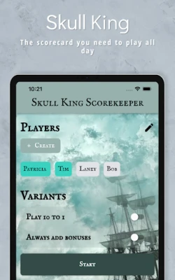 Introducing Skull King Scorekeeper, the must-have app for every Skull King card game enthusiast! The most intuitive and precise scoring app on the market. Lose the pen and paper, and let Skull King Scorekeeper keep track of your scores and more, all in one place. Take your game nights to the next level with this feature-packed score tracking application designed specifically for the popular Skull King card game.