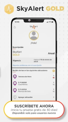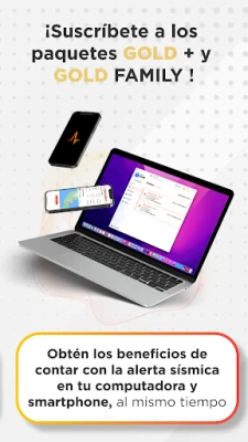 Suscríbete a GOLD+ con la que podrás registrar hasta 3 ubicaciones, activar la ubicación por GPS al usar la aplicación y olvidarte de los anuncios. ¡Eso no es todo! Con tu suscripción tienes acceso a una licencia del nuevo SkyAlert HOME, nuestra alerta sísmica para computadoras. ¡Inicia ahora tu prueba de 30 días GRATIS!