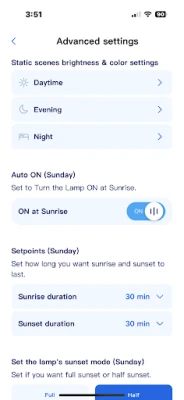 The SKYVIEW™ app can be automatically set to match sunrise and sunset times of your local time zone. It can be quickly customized to your unique sleep and wake schedule. Your SKYVIEWTM lights will adjust automatically, creating sunrise, daytime, sunset, and warm evening hues that return your body to a natural and healthy rhythm.