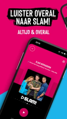 Met de SLAM! app luister je altijd en overal naar de lekkerste dance- & popmuziek, check je de laatste nieuwtjes & video’s, kan je meedoen aan te gekke acties en stuur je gratis berichtjes naar de SLAM! studio.
