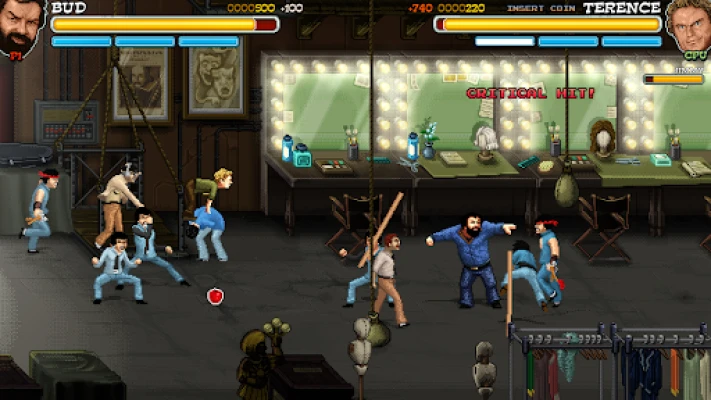 Slaps and Beans 2 returns as a scrolling fighting game with a retro gaming look with a platform mechanic that allows the player to control Bud Spencer and Terence Hill in a revised and improved version of the combat system. Brand new environment dynamics that progressively add enemies as the difficulty increases and of course again with lots of funny quotes.