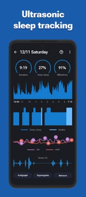 ✓ Sleep Score: deficit, regularity, efficiency, phases, snoring, breath rate, SPO2, HRV