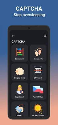 - Never over sleep again with CAPTCHA wake up verification (Math, Sheep counting, Phone shaking, Bathroom QR code or NFC tag scanning...)