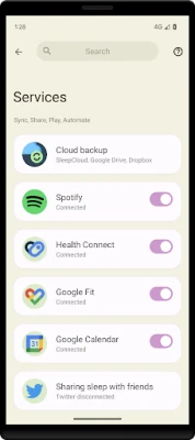 Connections with 3rd party service, such as Zenobase, FitnessSyncer, Fluxtream or Nudge. Correlate your sleep with data from other sources: e.g. Fitbit, RunKeeper, Strava, Foursquare, Last.fm...
