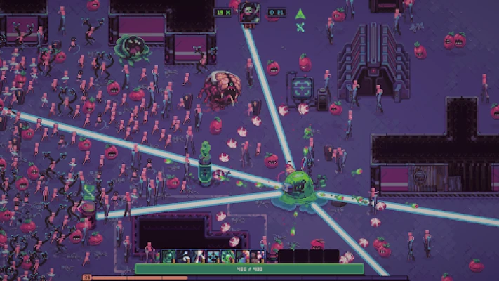 Slime 3K adds strategic depth and more creative experimentation to the survivor-like formula by introducing a deep deckbuilding system. Unlock, upgrade, mix and match your cards to stock up an impressive arsenal of zany weapons and traits. Create the perfect bloodbath loadout for each run!
