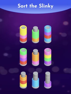 Join Slinky Sort Puzzle, an addictive game that offers both challenge and relaxation with the task of sorting colorful rings. Join in and get your brain fired up with colorful excitement!
