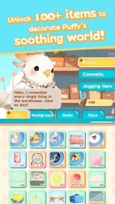Exchange rewards to unlock over 100+ outfits, furniture pieces and decorations for Puffy’s cozy room.