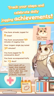 - Jog together with Puffy, a chubby and lovable hamster who cheers you on.