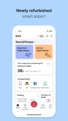 The smart airport guide provides real-time departure/ arrival information and the calculation of parking congestion and parking fees.