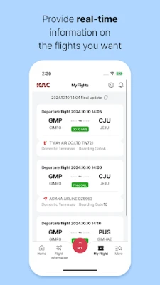 Easily retrieve and view departure/arrival flight information and schedule information from 14 airports