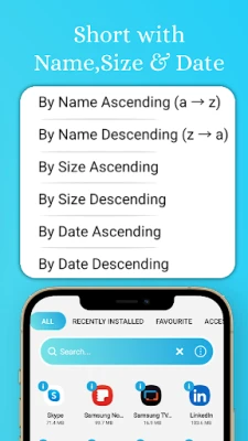 - App Sorting : Sort your apps by name, size, or installation date to find what you need faster.