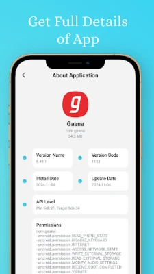 - Detailed App Information : Get comprehensive details for each app, including version code, installation date, update date, API level, and permissions, so you can stay informed about your apps.