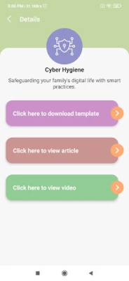 The app offers basic features such as registration, login, the ability to view and download templates, access YouTube videos, and articles related to topics such as health, financial literacy, estate planning, religious and social welfare, education, time management, empathy and sympathy, family bonding, and cyber hygiene.