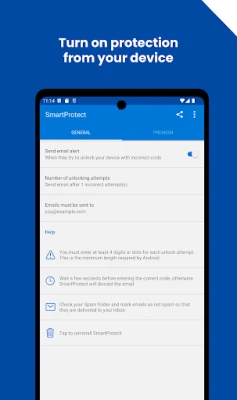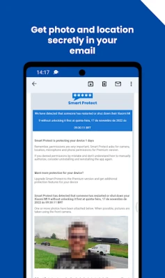 1. Protection against theft: With Smart Protect, you can protect your device against thieves who try to unlock it with the wrong code. The app takes a silent photo and sends the intruder's image by email along with the device's GPS location.