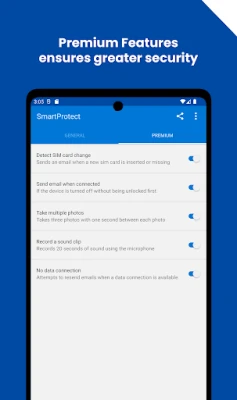 5. Privacy: Smart Protect does not store your photos or information on a central server. The information collected is sent only to your email and the GPS location is stored only on your device. This helps ensure your privacy and security.