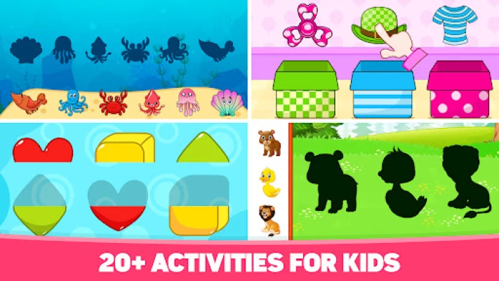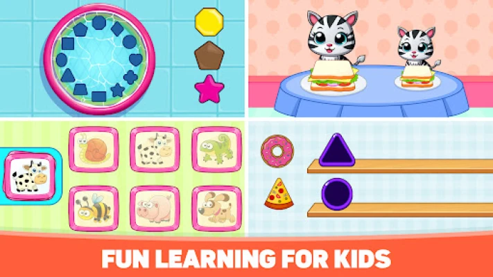 - Shape Matching: Drag and match shapes, animals, toys, and more.