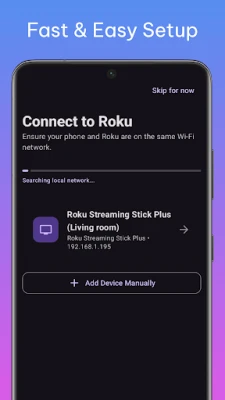• Automatically detects Roku TVs and streaming devices on your WiFi
