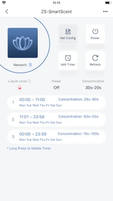 2. Multiple devices can be added at the same time, secondary group management, easy control of all smart scent devices 3. Flexible setting of up to 12 sets of timing tasks and stepless concentration adjustment 4. One-click or batch authorization to share equipment, so that employees or customers can also realize equipment management 5. With low liquid volume alarm function, real-time viewing of equipment liquid volume status 6. Supports Bluetooth, WIFI and base station network equipment at the same time