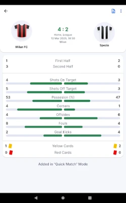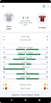 - ”QUICK MATCH” (simple mode): enter match result and optionaly a few basic statistics (shoots on target, ball posession, cards etc.)