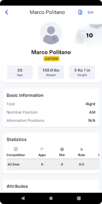 Easily add your players. Besides basic info such as name, photo, preffered foot or contact info, you can set player’s technical, mental or physical attributes and edit them when your player makes progress.