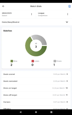 - ”MATCH MODE” (complex mode): set lineup, subs bench, tactic and log EACH match event: goals, assists, substitutions, cards, etc. (25 preset event types and the ability to extend the list and add your own events). You can also add match notes at the end to evaluate players