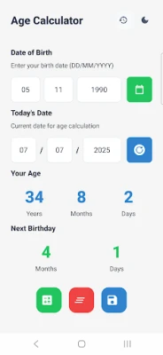 Calculate your exact age in years, months, and days with upcoming birthday countdown.