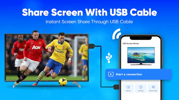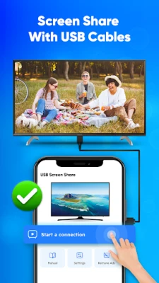 Enjoy your favorite content on a bigger screen with USB Screen Share. This screen mirroring app allows you to connect your phone to your Smart TV using a USB cable or wirelessly without needing Wi-Fi. Whether you're streaming videos, sharing photos, or giving presentations, casting your phone screen to TV has never been easier.