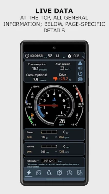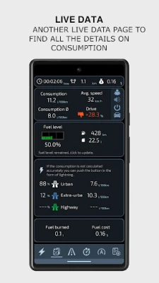 Complete live data: RPM, temperatures, instant consumption, battery voltage