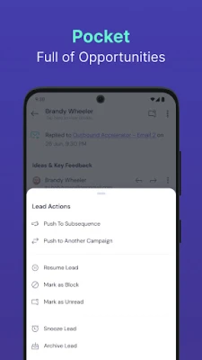Now close deals faster with the Smartlead AI Mobile App, your ultimate solution for managing hundreds of mailboxes on-the-go. Effortlessly categorize and organize your inbox from anywhere, ensuring no lead goes unattended. Receive real-time email alerts and customize push notifications to match your workflow, keeping you updated and ready to respond promptly. With advanced filtering options and quick reply capabilities, you can manage and engage with leads efficiently, accelerating your sales cycles. Enhance user engagement, reactivate dormant leads, and experience seamless lead management tailored to your brand.