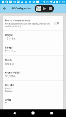 • Configure the app to reflect the size and weight of your vehicle.