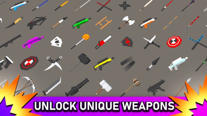 Collect a variety of cool new skins, unlock unique weapons, and customize your team or allies to assist you during your intense battles! You can make them struggle against each other.