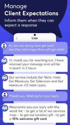 Auto responses are a way to tell the contact that you will get back as soon as you can. You could place at the end of your “not available” message, a list of keywords users can send you and get auto reply with requested info (require subscription to