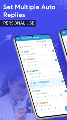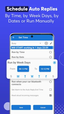 ✔ Option to set auto response by time, weekdays, repeat weekly