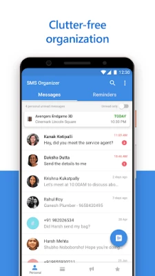 SMS Organizer, a Microsoft Garage project, is the smartest of all SMS apps. It automatically organizes your inbox, sets reminders and keeps track of them, all this magic happens on your device safely, without any of your personal data being uploaded anywhere online. Never miss anything important—switch to SMS Organizer as your default SMS app to experience it now!