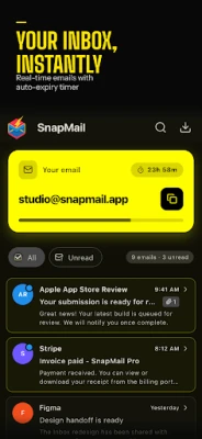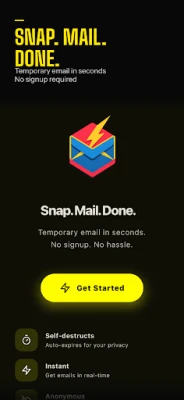 SnapMail gives you instant, anonymous email addresses that self-destruct. No signup. No personal info. Just tap and get