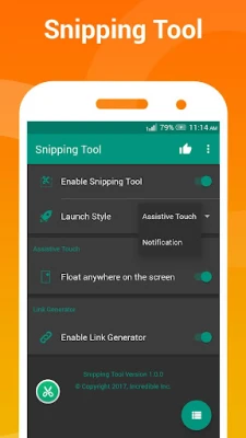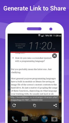 Introducing first app in Android to capture desired part of screen and share generated image.You can take a screenshot quickly without pressing any hardware button, just one touch for screenshot.