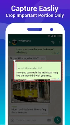 Snipping Tool lets you select which portion of screen you want to take as screen shot.No need to crop or blur your non-essential part of screen,Take screenshot of only highlighted portion of screen and share on the single tap to image.