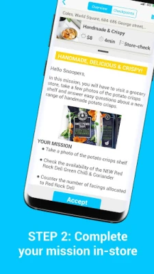 There are many different types of missions on the app, making it a fun way to earn money. In most cases you will only be asked to take a few photos and our system will analyse them so you don't have to spend too much time in store answering questions.