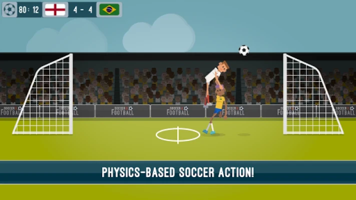 Challenge a friend to a same screen multiplayer game or play against the CPU in fast-paced 30 second soccer matches! A combination of animations and physics-based 2D ragdolls brings you a unique experience with simple controls. A new team is unlocked every other game played and as many as 65 teams can unlocked.