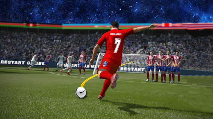 If you are really interested in soccer games and want to be a soccer champion you can download this top new free offline trending soccer game. Be part of this offline soccer game and improve your soccer skills like shooting, dribbling and dodge. We have multiple soccer modes like kick off, challenge, best free kicks, time attack, no miss, penalty and corners. If you want to strike the football in opponent net then become part of this ultimate soccer fun. Like soccer 11 player game you have to dribble and beat your enemies to strike bundle of goal in opponent net. Participate in this dream star league of soccer to drill and be soccer master.