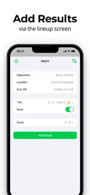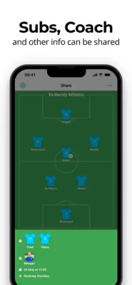 You can also include the coach, subs, captain and match information with one tap image sharing to all social media and messaging apps. Saving to your photos for perfect image quality is also available.