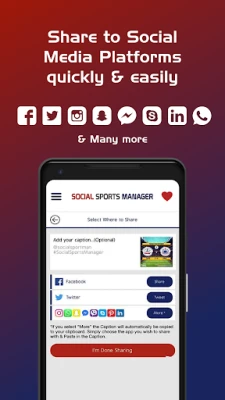 We all know it takes time to populate our social media feeds and also very time consuming. With Social Sports Manager your Social media timelines and feeds will be active on a new level plus they will be looking great and keeping your followers in the loop.