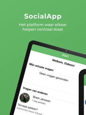 With SocialApp you are able to ask help to your neighbours.You may ask for:> Who want’s to drink a cup of tea with me?> Who like to play some cards?> Who is in for a walk?> Who can take care for my dog today?> Etc.