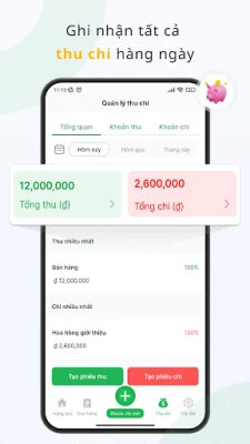 + QUẢN LÝ THU - CHI VÃNG LAI: Ngoài việc bán hàng bạn có thể quản lý thu - chi từ những nguồn khác để đánh giá chính xác nhất về tình hình kinh doanh của cửa hàng.