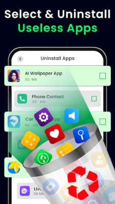 5️⃣ Uninstall user installed apps one by one to free up storage space & improve your device performance. (System apps cannot be removed & Our app does not uninstall multiple apps at once)