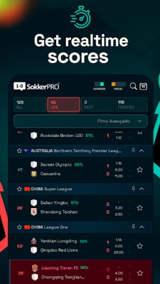 You can follow soccer games in real time, with the least possible delay (faster than TV and any app here on google play)